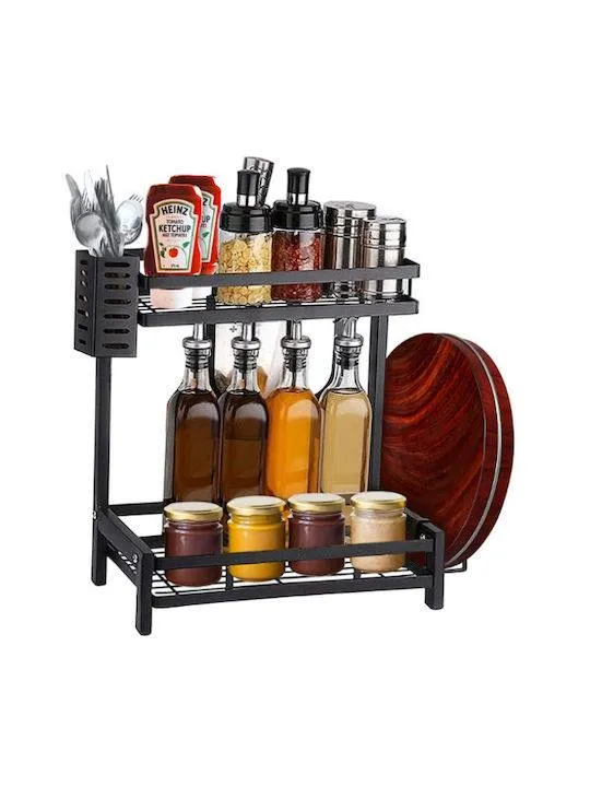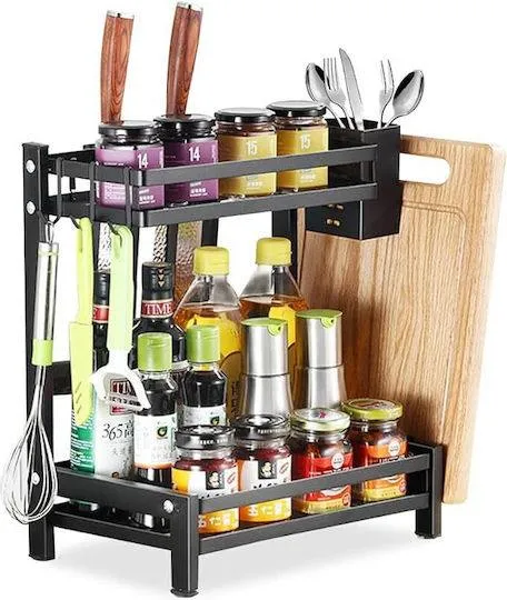 Cette étagère de rangement compacte est la solution idéale pour maximiser l'espace sur votre comptoir de cuisine. Conçue avec deux niveaux et des compartiments latéraux, elle offre un espace organisé pour les épices, les bouteilles d'huile, les condiments et les ustensiles. Son design moderne et robuste (probablement en métal noir) assure une excellente stabilité tout en ajoutant une touche d'ordre et de style à votre plan de travail.