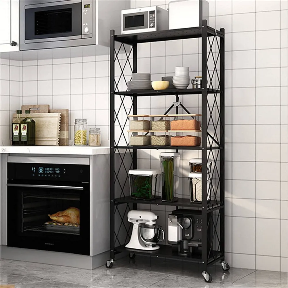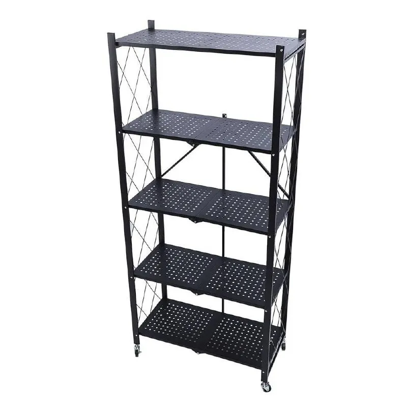 Cette étagère de rangement noire à cinq niveaux, robuste et polyvalente, est la solution idéale pour optimiser l'espace dans n'importe quelle pièce. Conçue pour la praticité, elle présente un mécanisme de pliage innovant qui permet un montage instantané sans outils et un rangement facile lorsqu'elle n'est pas utilisée. Ses roulettes verrouillables facilitent le déplacement et assurent une stabilité parfaite. La construction en métal perforé garantit une bonne aération et une grande durabilité. C'est un meuble parfait pour organiser votre cuisine, garage, bureau ou même votre buanderie.