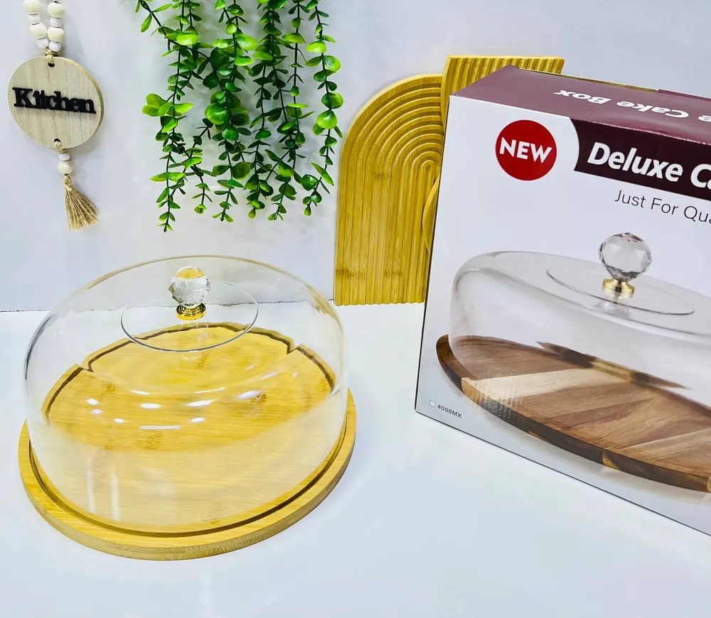 Coffret de Luxe Deluxe Cake Box avec Cloche en Verre et Plateau en Bois