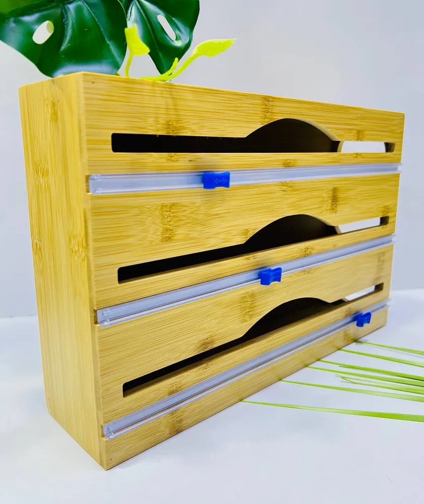 Ce distributeur mural ou de tiroir en bambou naturel est la solution élégante et écologique pour organiser les emballages de cuisine. Fini les boîtes en carton encombrantes et déchirées ! Ce système intelligent offre trois compartiments distincts pour ranger et distribuer proprement votre papier d'aluminium, votre film alimentaire et votre papier sulfurisé. Il combine l'esthétique chaleureuse du bambou avec la fonctionnalité de ses lames de coupe coulissantes pour des découpes nettes à chaque fois.