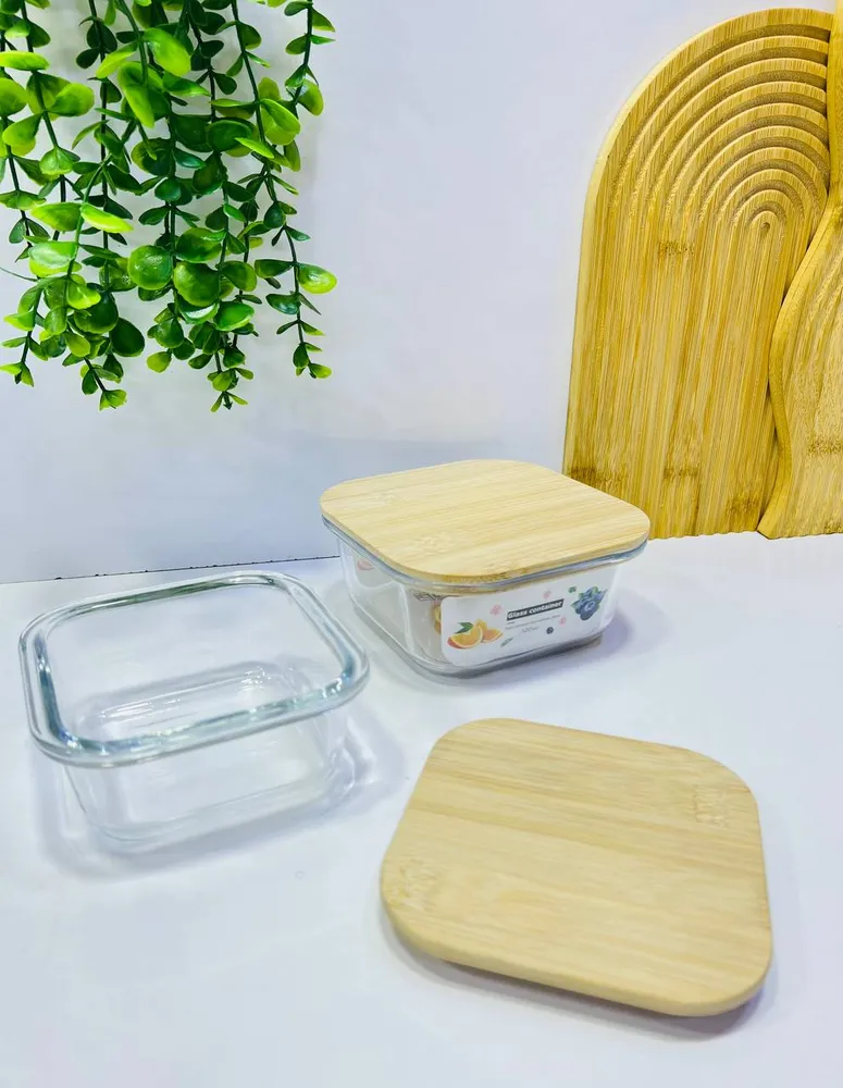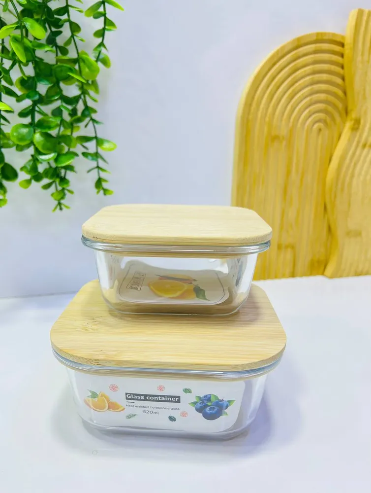 Ensemble de Boîtes de Conservation Hermétiques en Verre Borosilicate et Bambou 2pc