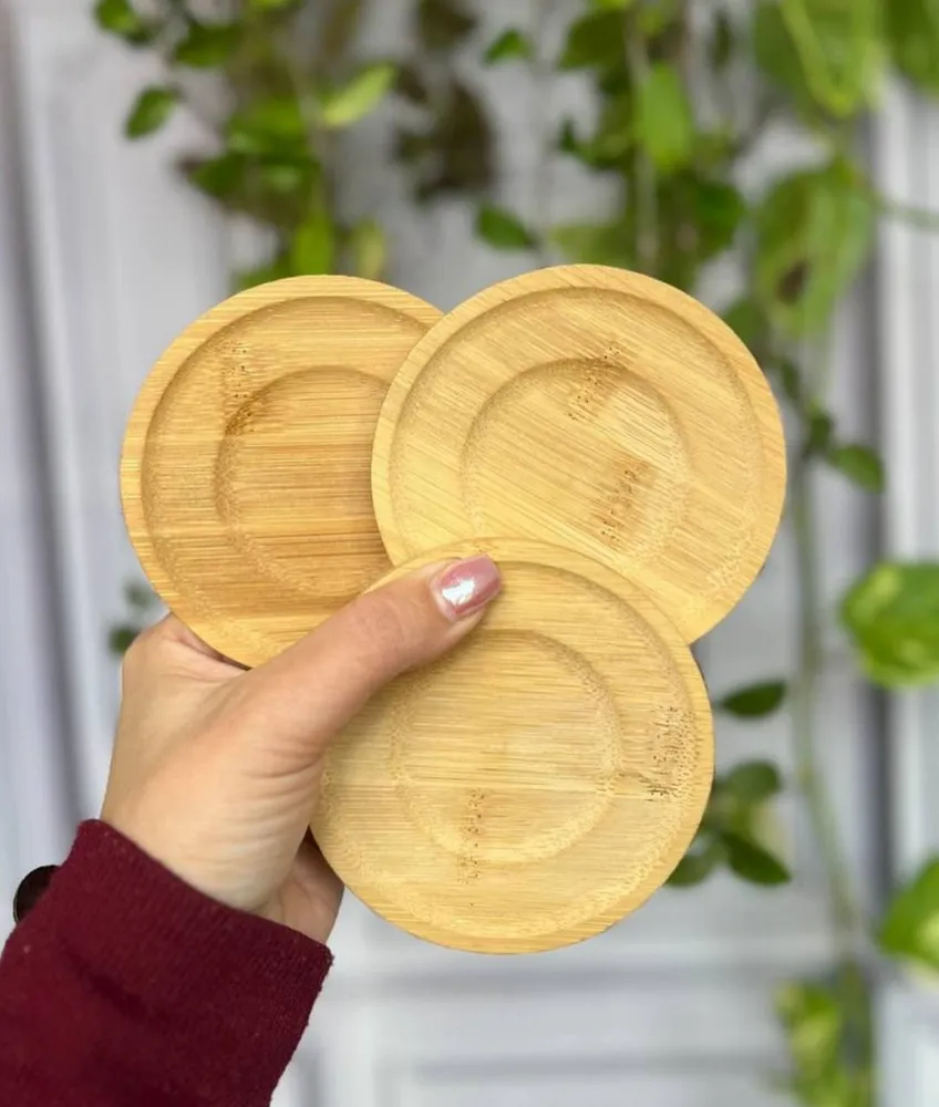 Ensemble de Sous-Verres Carrés en Bambou Naturel avec Emplacement pour Tasse (6pc)