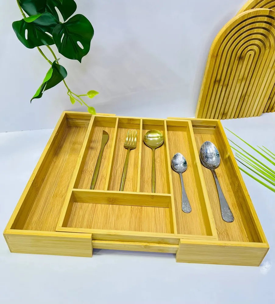 Organisateur de Tiroir Modulable en Bambou pour Couverts