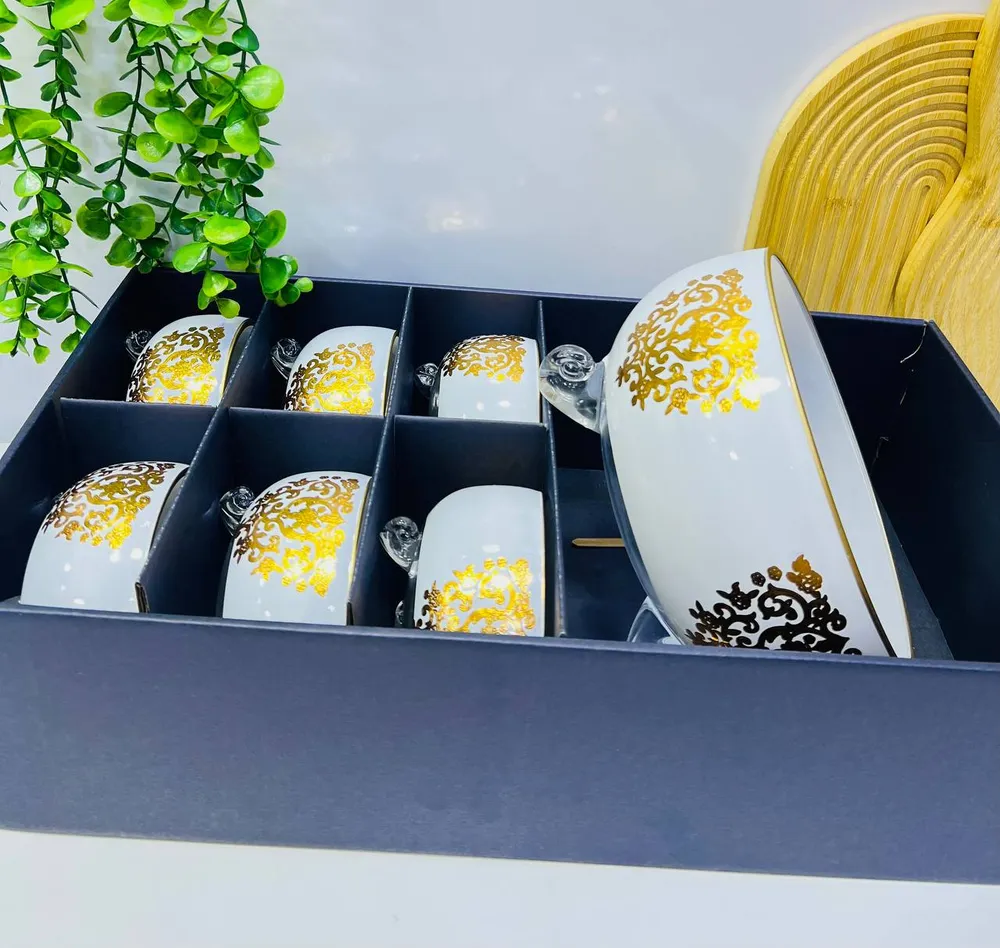 Design : Motifs arabesques dorés et détaillés appliqués sur la surface, offrant un style opulent et traditionnel.