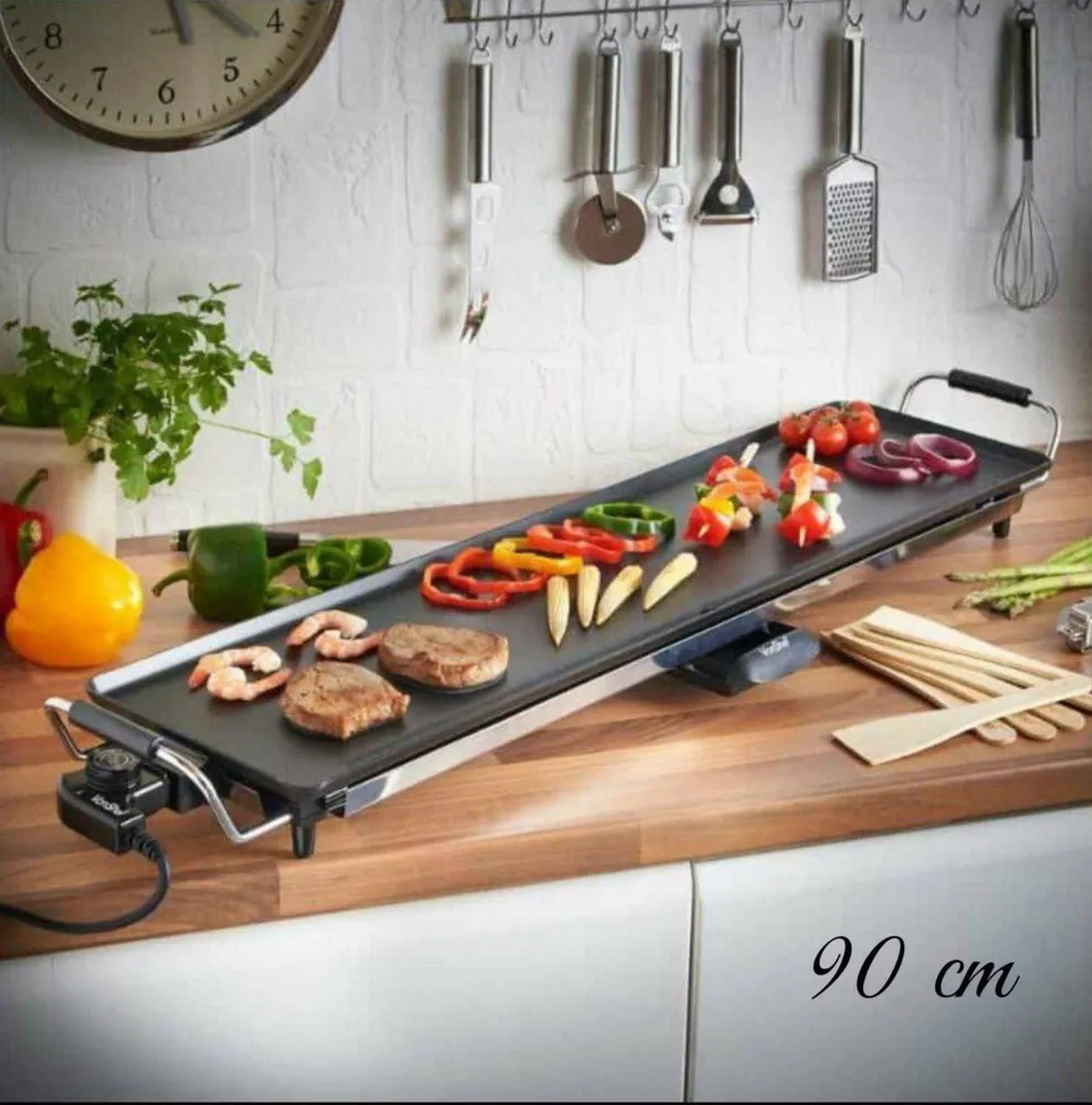Cette plancha électrique extra-longue (90 cm) de la marque RAF, modèle R.5415, est la solution parfaite pour les amateurs de grillades qui cherchent à cuisiner de grandes quantités d'aliments simultanément, sans fumée et sans flamme. Son design allongé et sa grande surface de cuisson la rendent idéale pour les familles nombreuses, les fêtes ou les repas-partage.