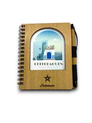 Carnet de notes en bois de Chefchaouen, Maroc, avec stylo