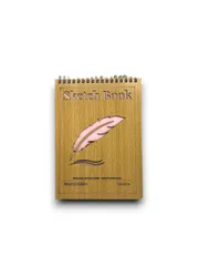 Carnet de croquis à spirale avec couverture en bois et motif de plume